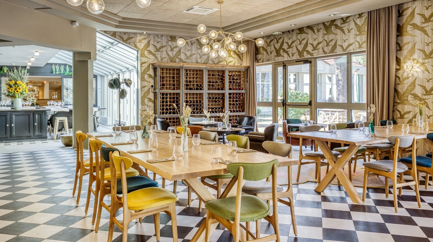 Dans un écrin boisé où séquoias et cèdres bleus centenaires se mêlent en jouant le rôle de gardes du domaine, les chambres et le restaurant s’ouvrent sur les pelouses, les jardins, le parc ainsi que la piscine chauffée et son pool house.