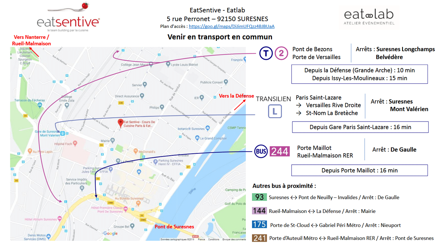 Les animations peuvent se dĂ©rouler dans notre espace Eat Lab Ă Suresnes (92), dans les entreprises, sur leurs lieux de sĂ©minaire ou dans des endroits plus insolites de caractère, que nous recherchons pour vous comme une pĂ©niche, un rooftop, un lieu de vie en plein air…