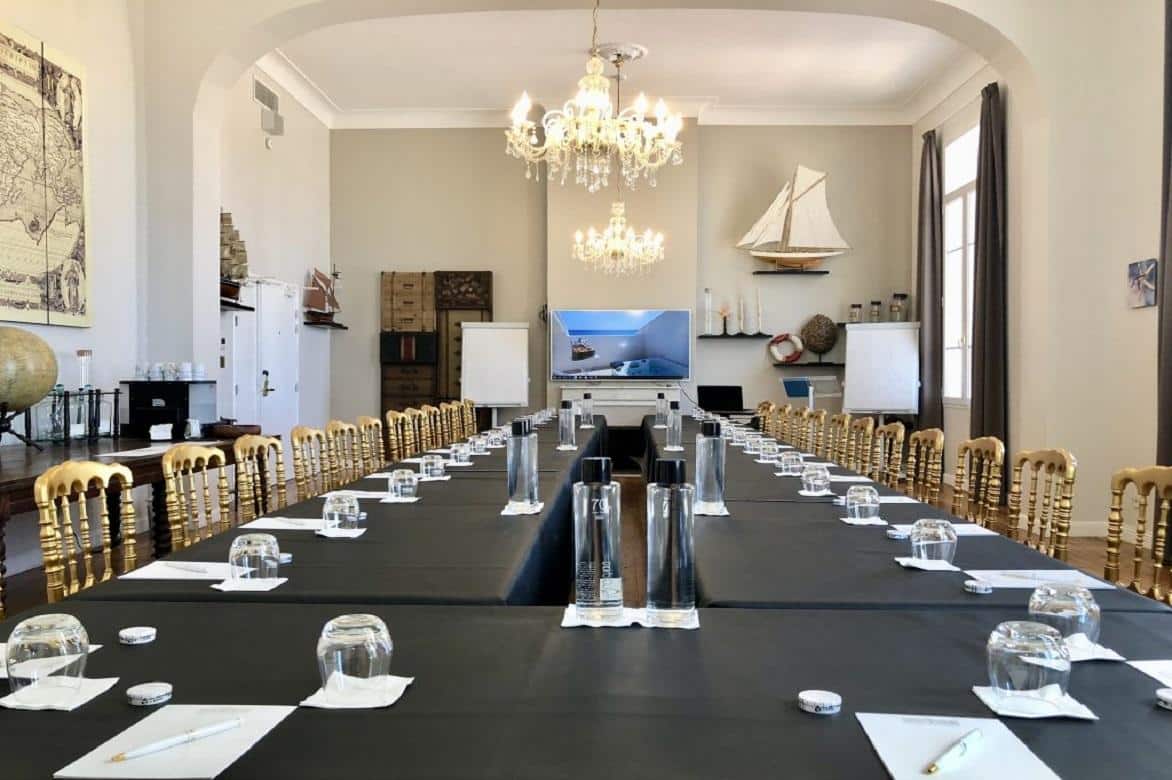 La salle « Magellan » qui peut recevoir des groupes de plus de 200 personnes (assises) avec une vue remarquable sur la Grande Bleue !