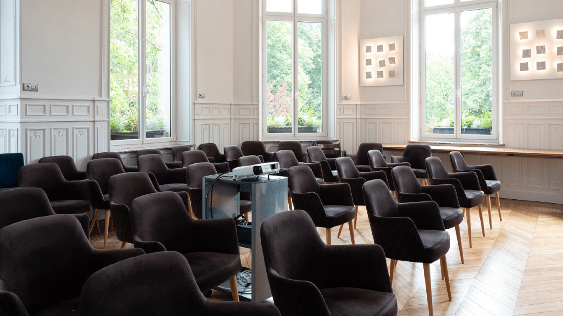 La Bibliothèque offre un décor élégant et chaleureux de 60 m², bénéficiant de la lumière naturelle, d’un mobilier soigné et d’équipements techniques de dernière génération.