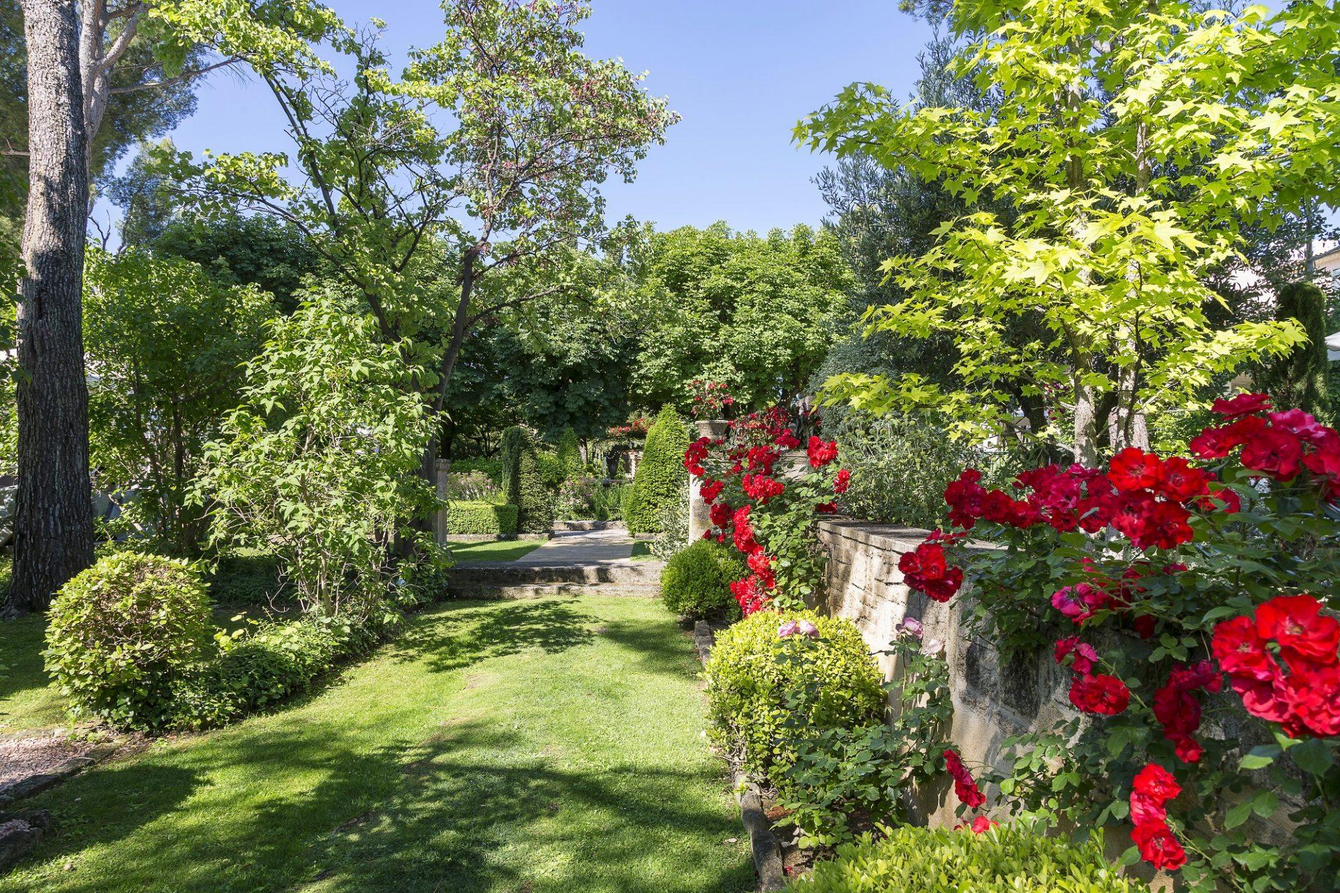 Presque rien, un détail, ne distingue la grille de son entrée. Après avoir remonté une longue allée de platanes, vous le découvrez comme posé, vous attendant au milieu de ses jardins, son parc arboré de mille essences…