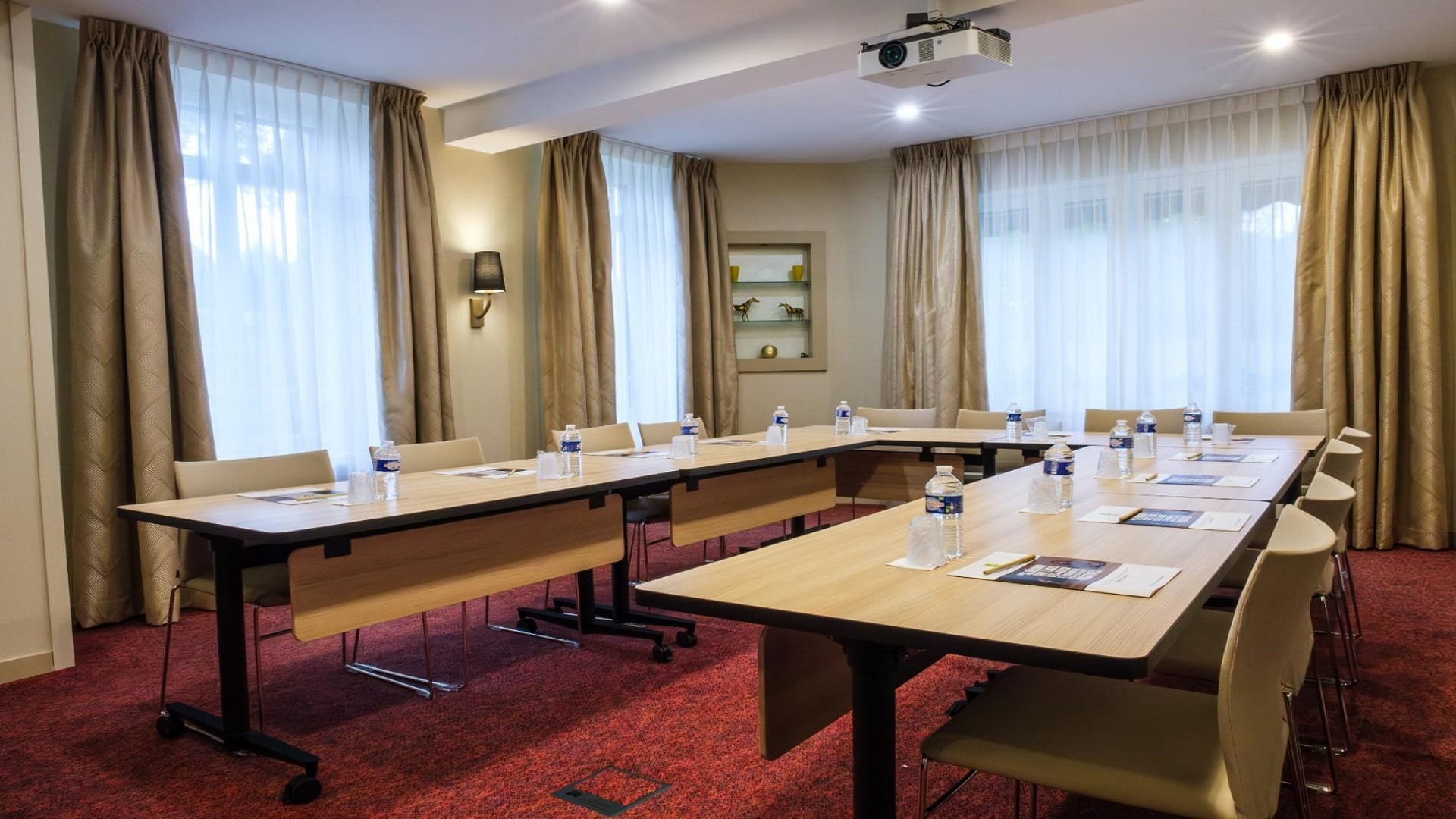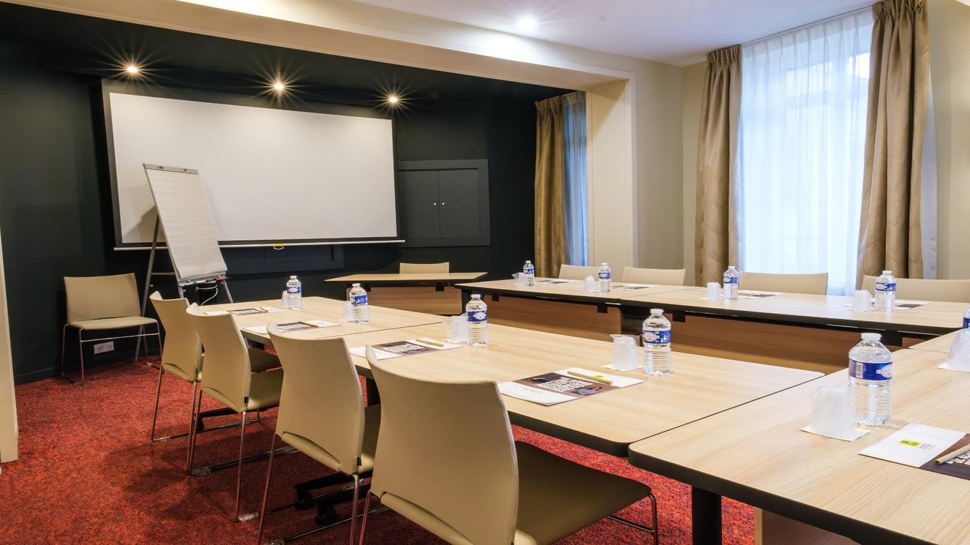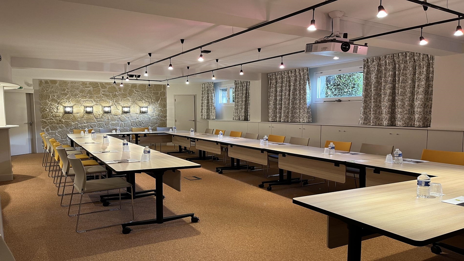 - En style U, jusqu’Ă 25 pax et 50 pax en style théâtre