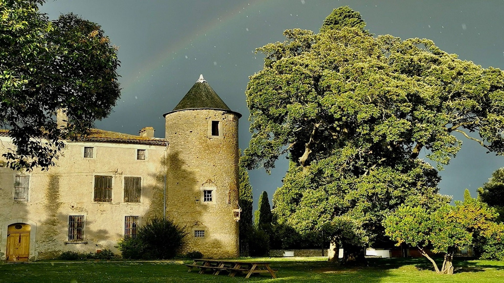 Notre demeure, Les Cabanes dans les Bois, à Villalier, à cinq minutes de la majestueuse Cité Médiévale de Carcassonne bordée par le Canal du Midi, à vue directe des remparts.