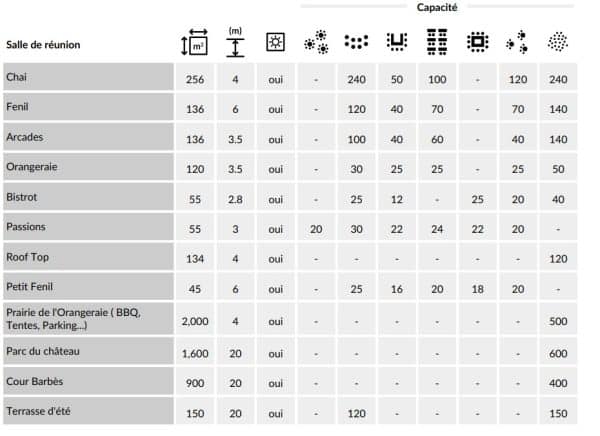 Capacités des salles de réunions
