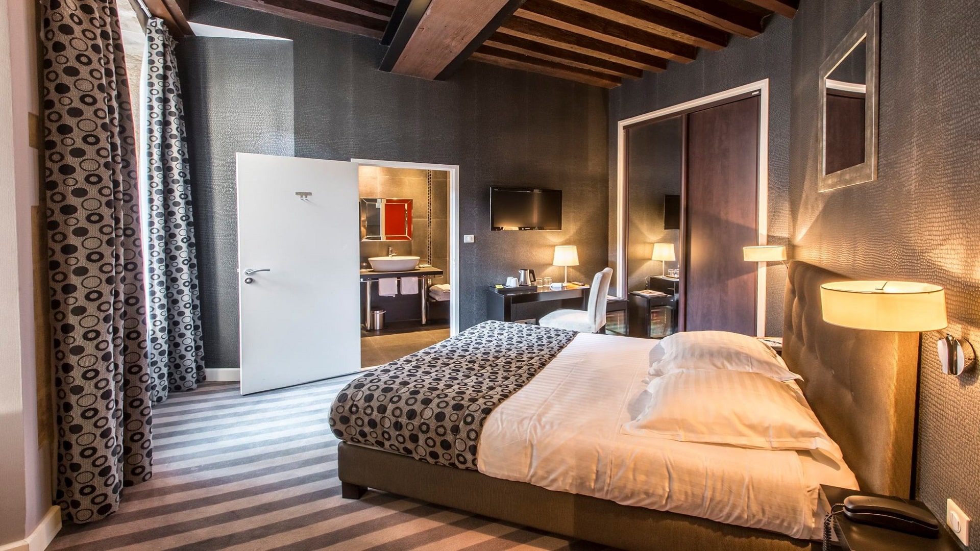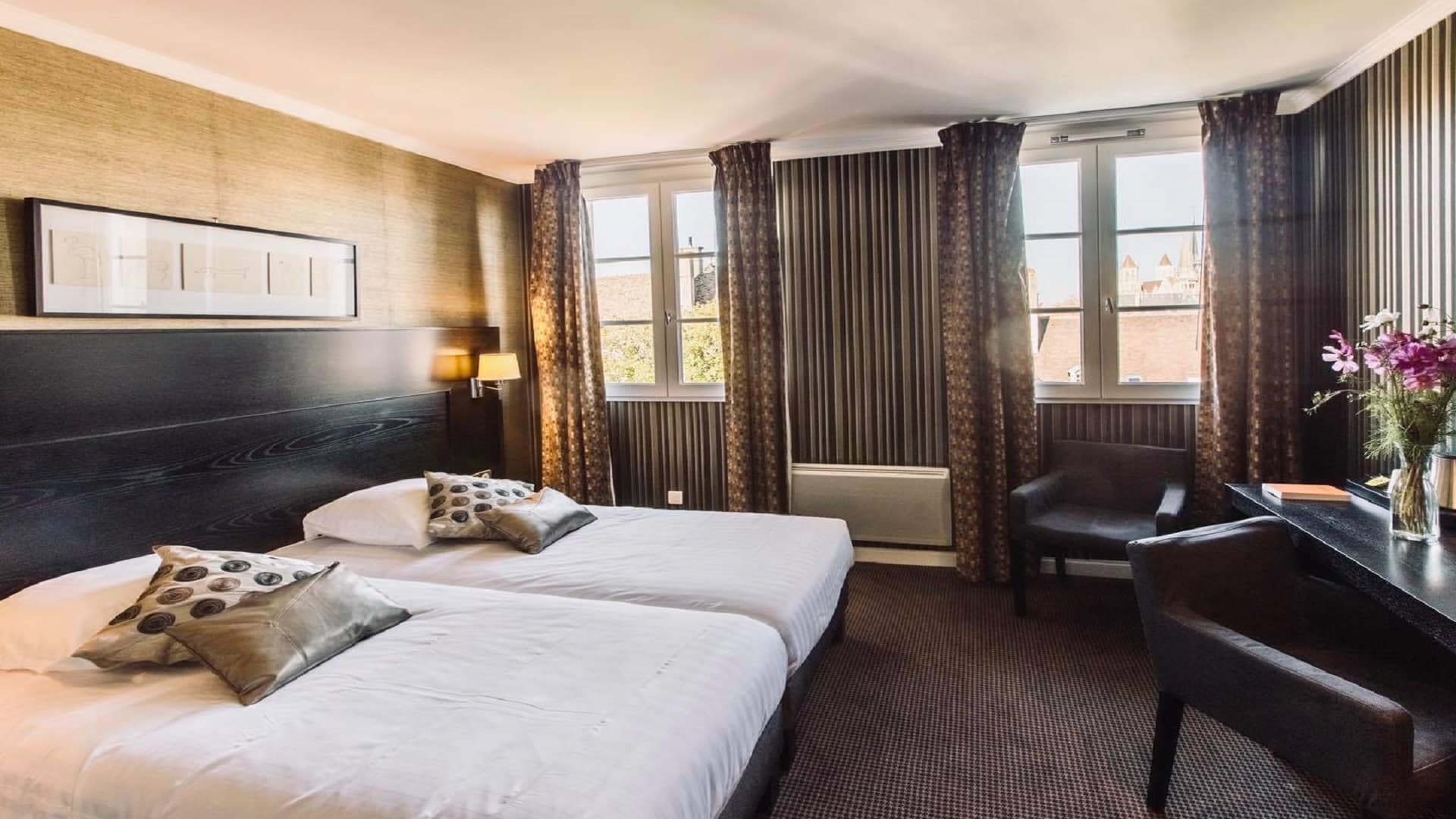 Au cœur de la ville, dans un environnement privilégié, loin de l’agitation, venez vous ressourcer dans l’une de nos 40 chambres à l’atmosphère sobre et originale, le pied à terre idéal pour votre séminaire de caractère Bourguignon.