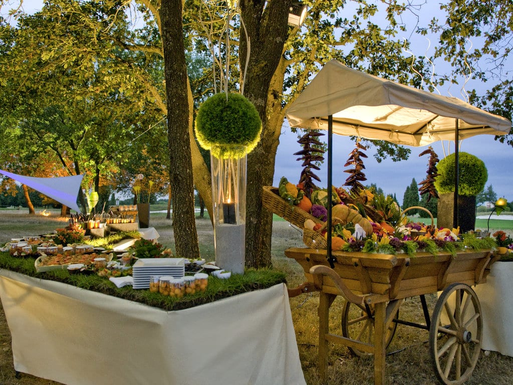 Dès les beaux jours, les repas sont servis sur la terrasse en bord de piscine pour profiter pleinement de la vue magnifique sur le golf.
