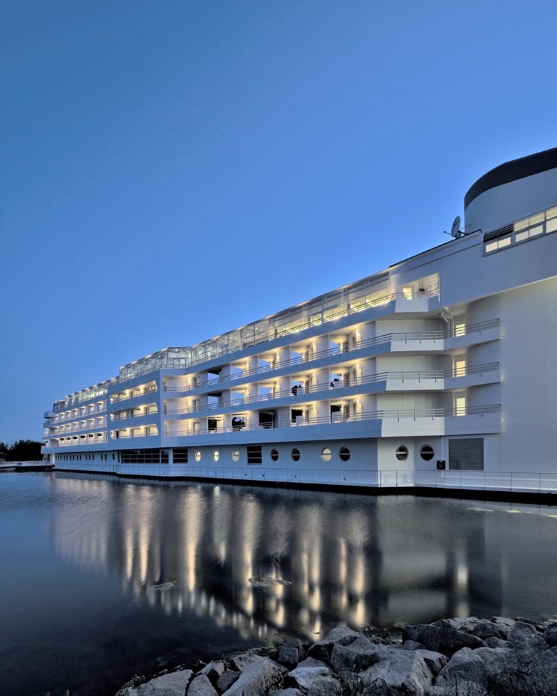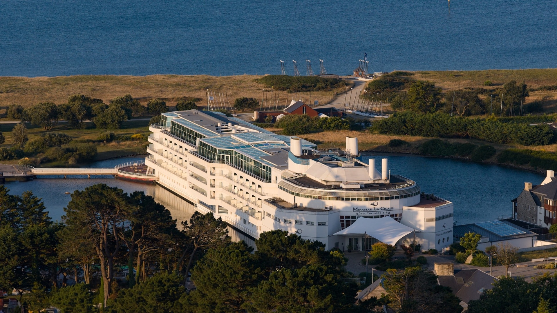 Notre demeure, Le Miramar La Cigale, au port du Crouesti à Arzon, en baie de Quiberon, tel un navire s’imposant sur les eaux… alliant luxe et sérénité. 137 chambre situées sur la magnifique presqu’île de Rhuys en Bretagne…