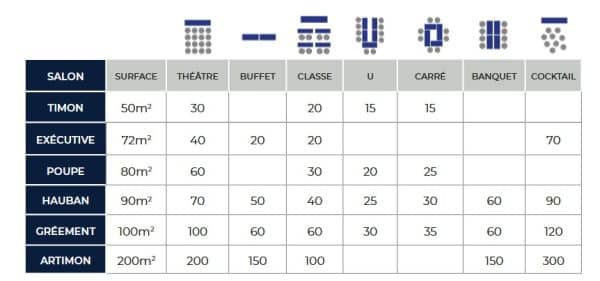 Capacités des salles de réunions