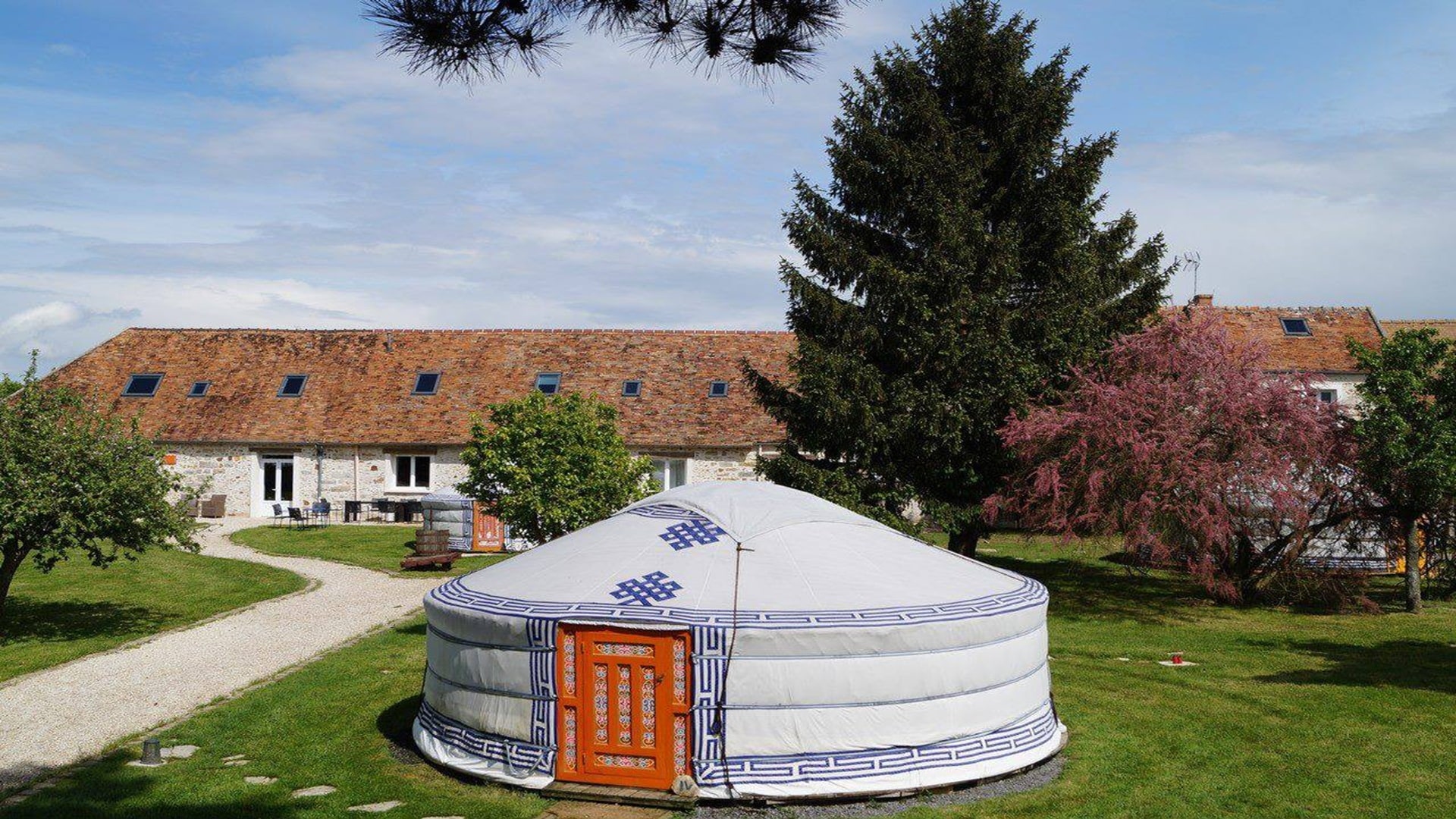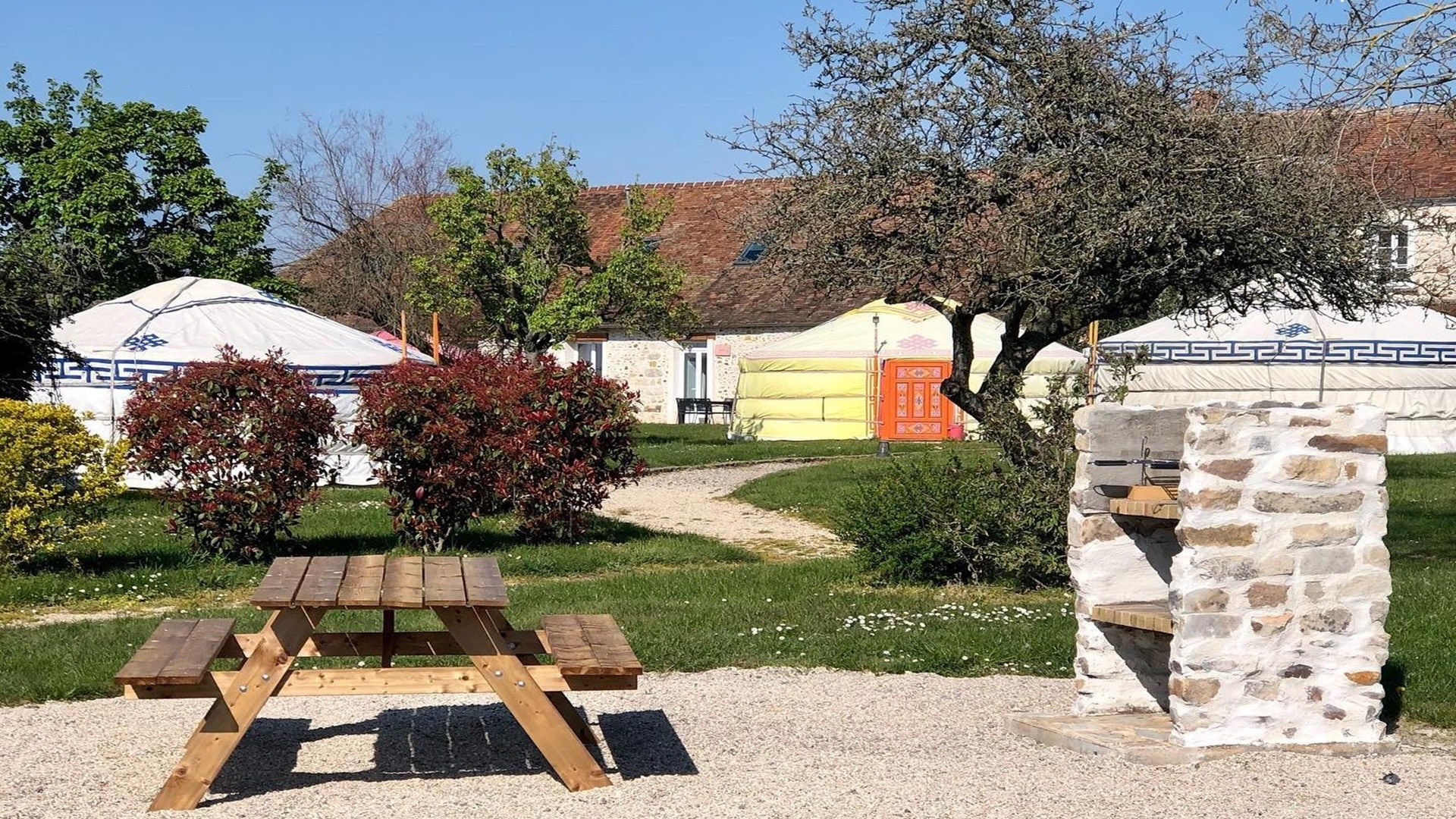 Notre demeure, Le Nomade Lodge, Ă La Chapelle Gauthier, en Seine & Marne, Ă 45 minutes de Paris, entre Melun et Fontainebleau est une magnifique ferme briarde « unique en ĂŽle de France » entourĂ©e d’authentiques yourtes Mongoles sur 8 hectares en lisière de la forĂŞt de Villefermoy.